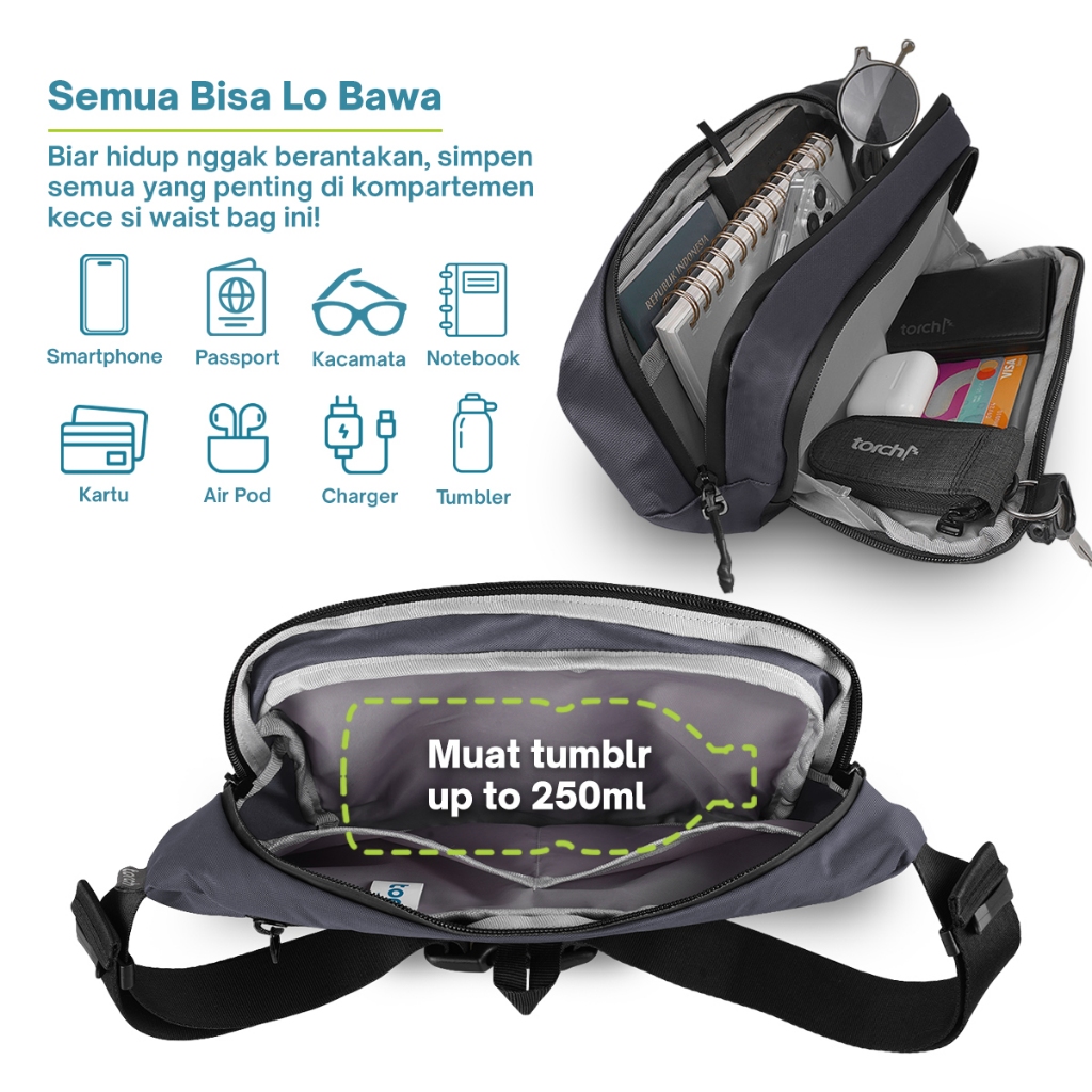 TORCH Aichi Tas Pinggang Selempang Konser Ringan Anti Air Pria Wanita - Waist Bag Crossbody Waterproof Outdoor