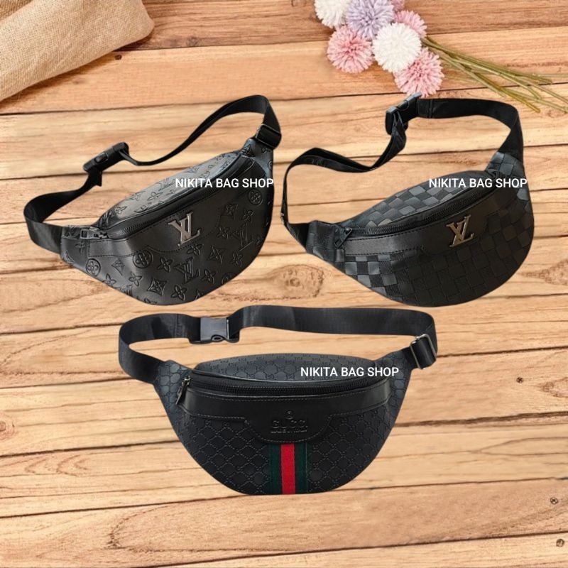 Promo Tas Waistbag full black pria dan wanita / Slingbag / Shoulder Bag / Tas pinggang pria