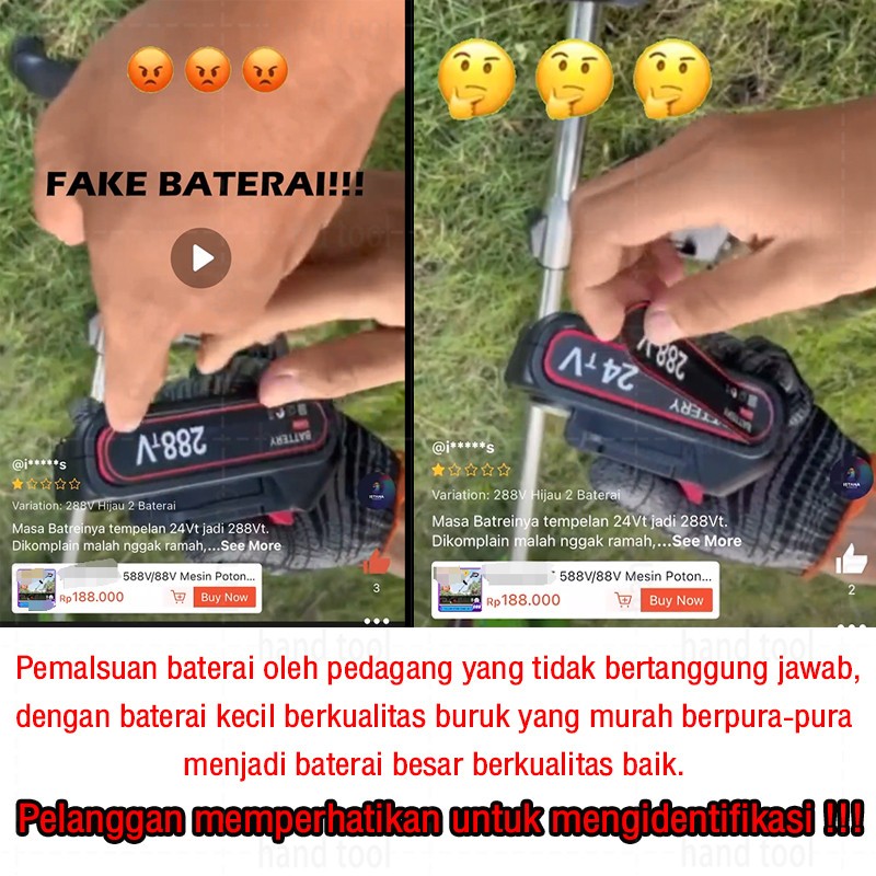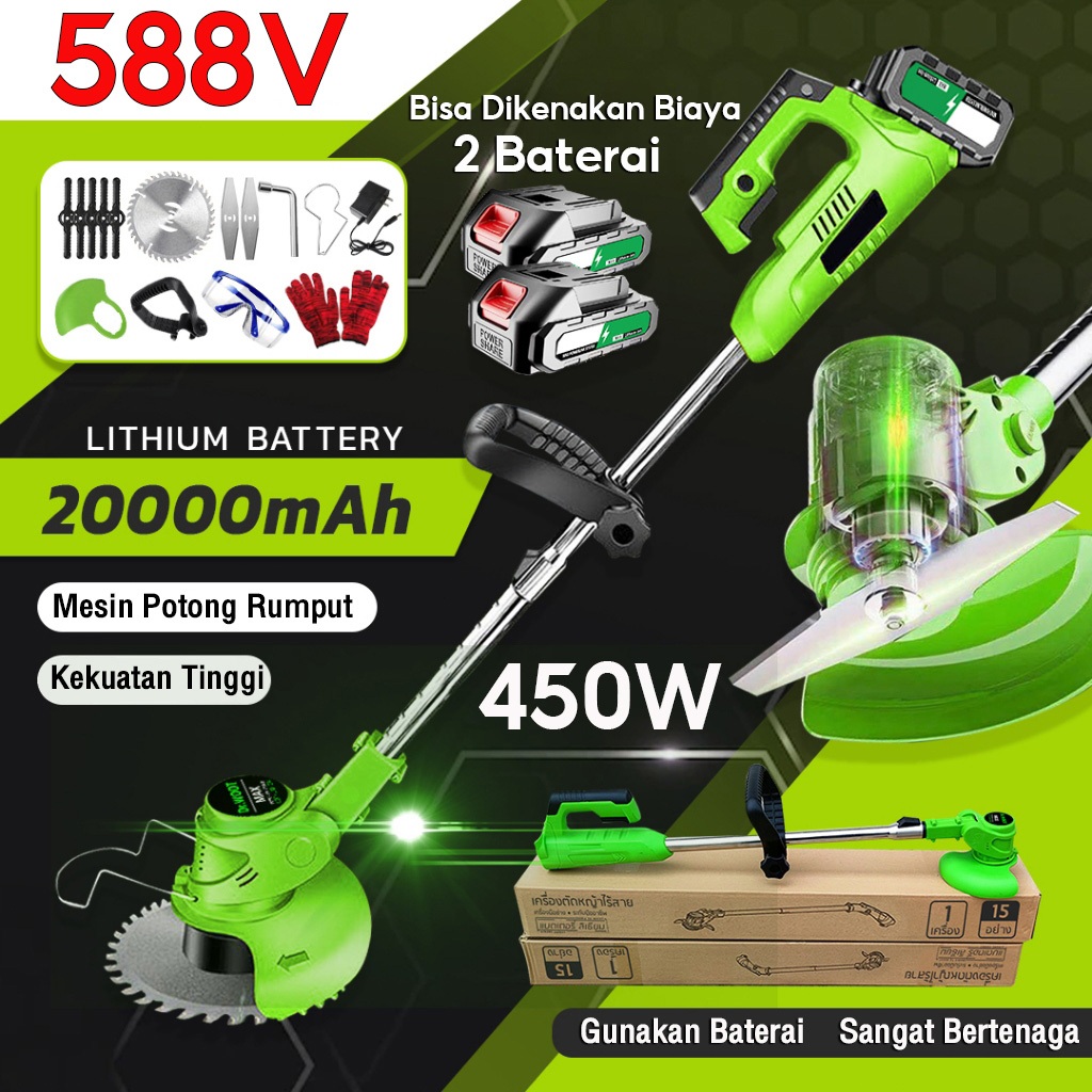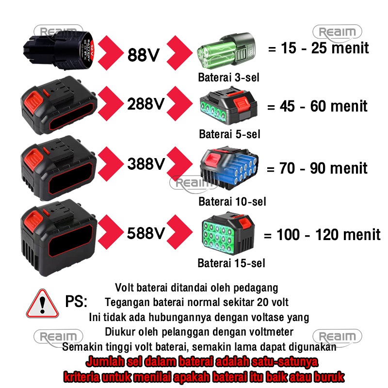 REAIM Mesin Potong Rumput Baterai 588V Kualitas Tinggi Pemotong Rumput Listrik Pemangkas Rumput Dengan Baterai Li-ion Ya