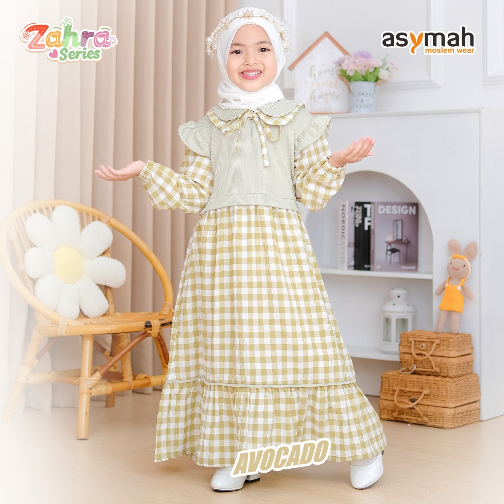 Gamis Anak Premium Knit Mix Crincle Kotak Kotak Zahra Series By Asymah