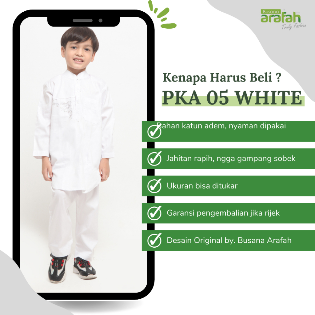 Baju Koko Setelan Kurta Pakistan Size dewasa anak laki laki Bahan Katun PK 04 PK 05 dan PK 06 White