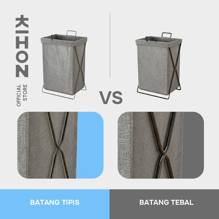KIHON KAGO Keranjang Laundry Lipat Minimalis Dapat Dilipat Dilengkapi Rangka Besi Penyangga - Abu