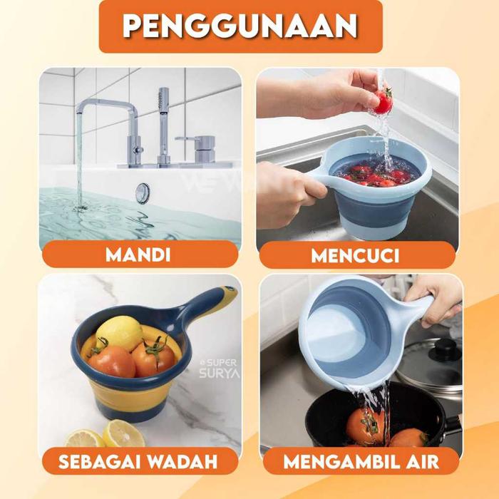 Gayung Lipat Elastis Silicon Portable Serbaguna Wadah Mandi Cuci - Hijau