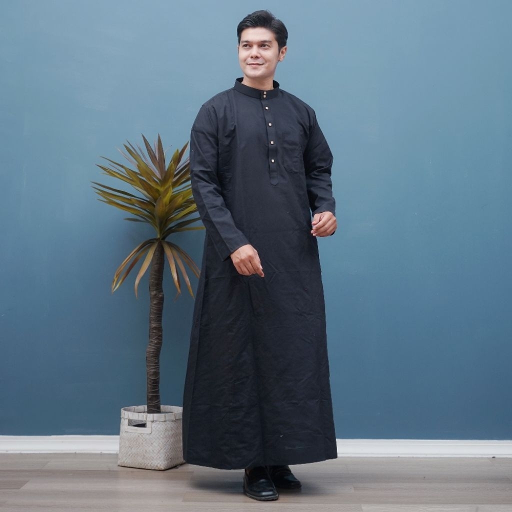 Gamis Pria Dewasa/Gamis Madinah Polos, Snap Button, Katun Airflow Lembut-Adem-Nyaman