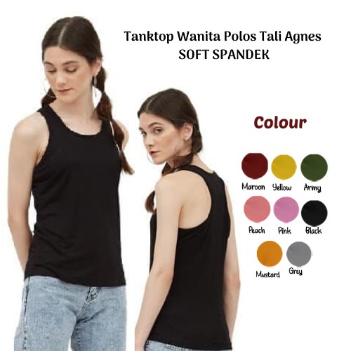 Tanktop Wanita Bahan Spandex Polos Tali Kecil Agnes Singlet Kaos Dalam Cewek Yelonix