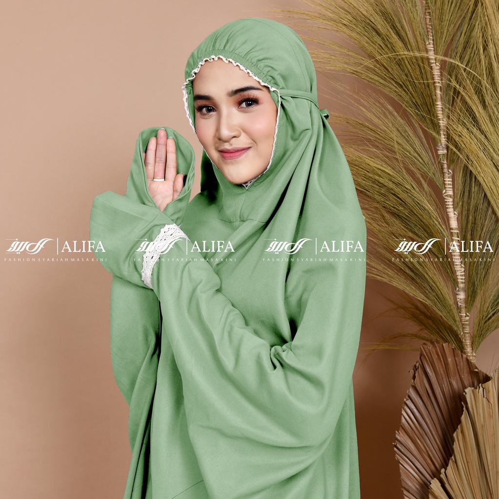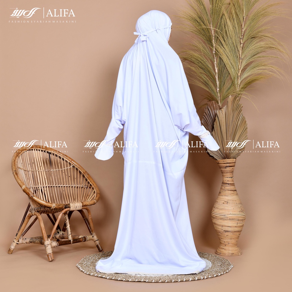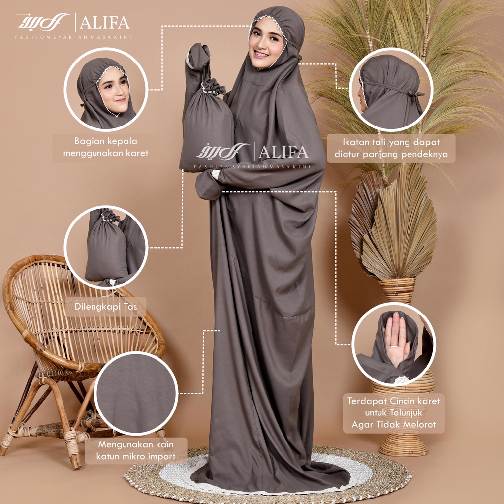 Mukena Terusan Travel Renda Terusan Polos Traveling Katun Mikro Free Tasbih