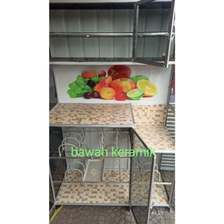 Rak piring bawah keramik 3 pintu 3pintu 2pintu/ rak dapur / rak piring 3 pintu kaca 2p plat tiang tebal 2 pintu