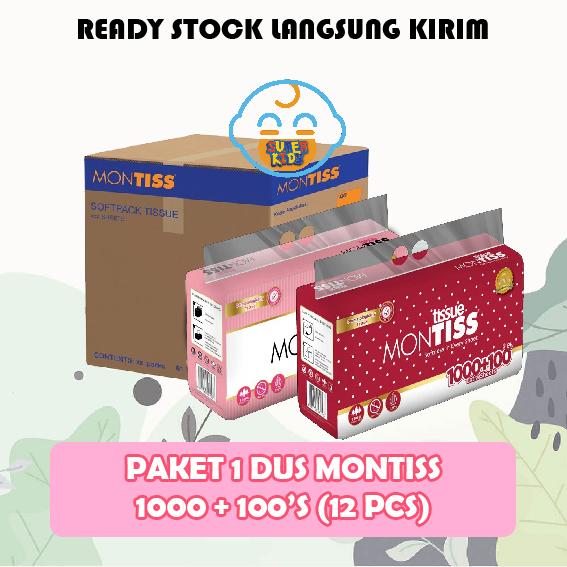 PAKET 1 DUS MONTISS FACIAL TISSUE TISU WAJAH 2PLY 1000 + 100 SHEET ISI 12 PCS
