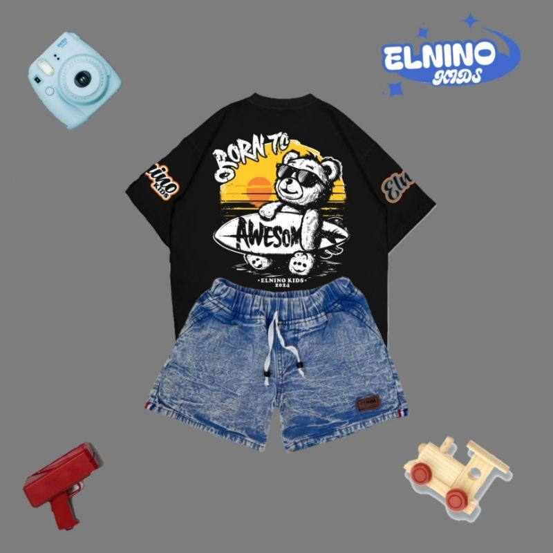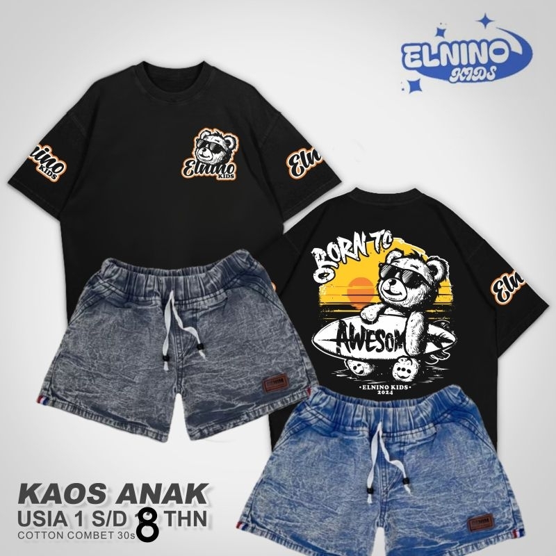 Setelan Jeans Anak Usia 1-8 Tahun Laki-laki dan Perempuan Motif Awesome