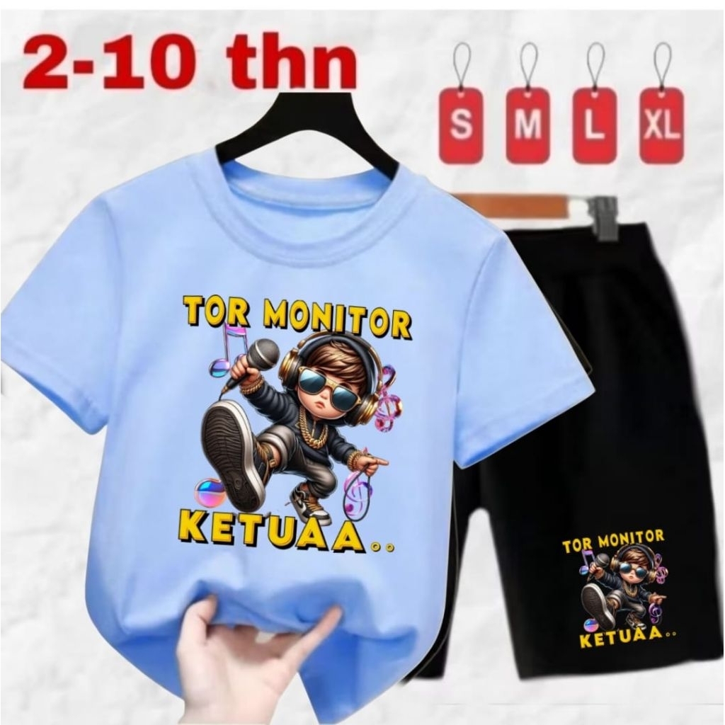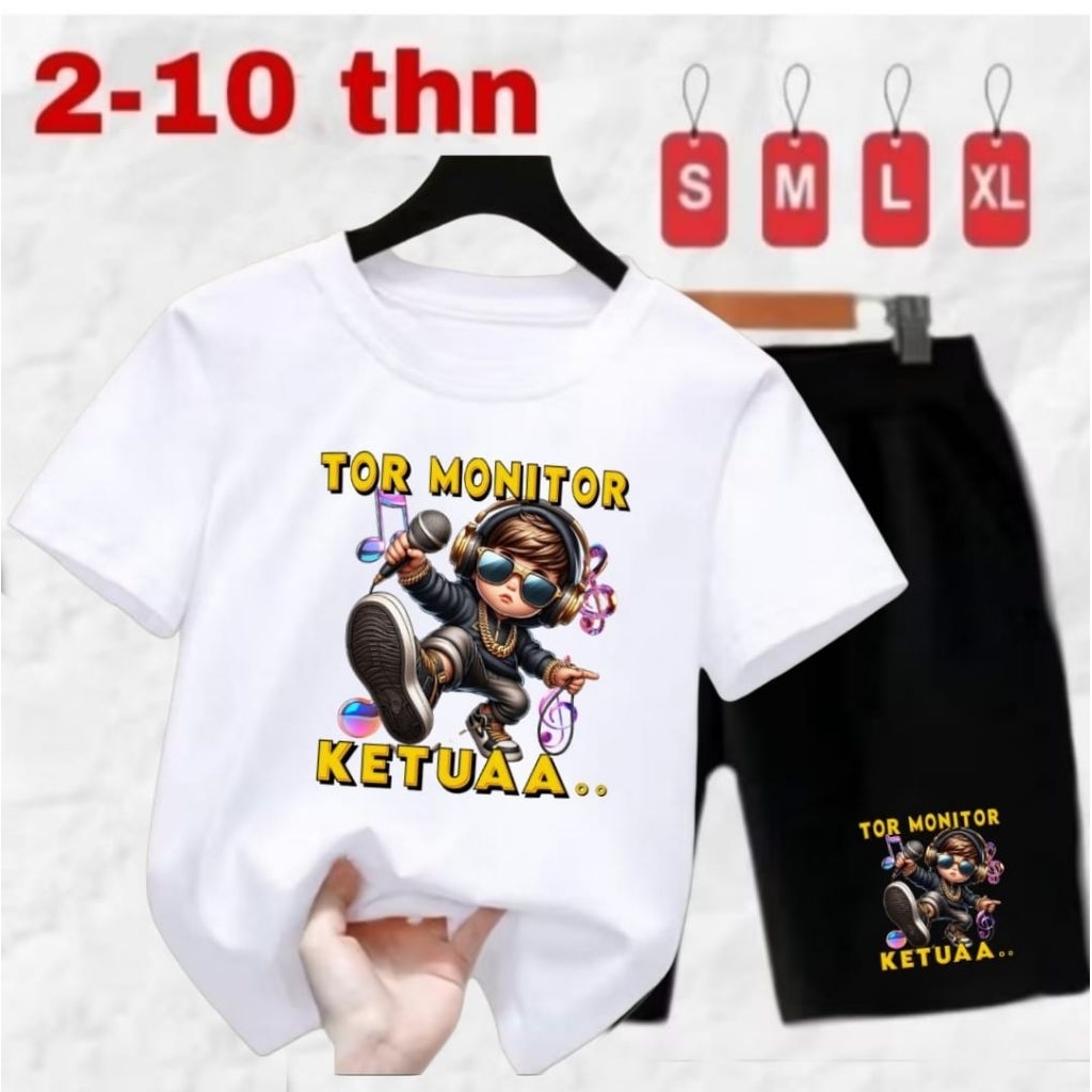 setelan anak cowok cewek usia 2-10 thn//pakaiyan anak pria-wanita motif TOR MONITOR KETUA
