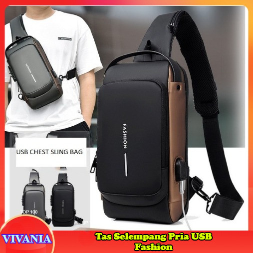 VIVANIA - O1 Tas Selempang Pria USB Fashion Waterproof Men Chest Sling Bag