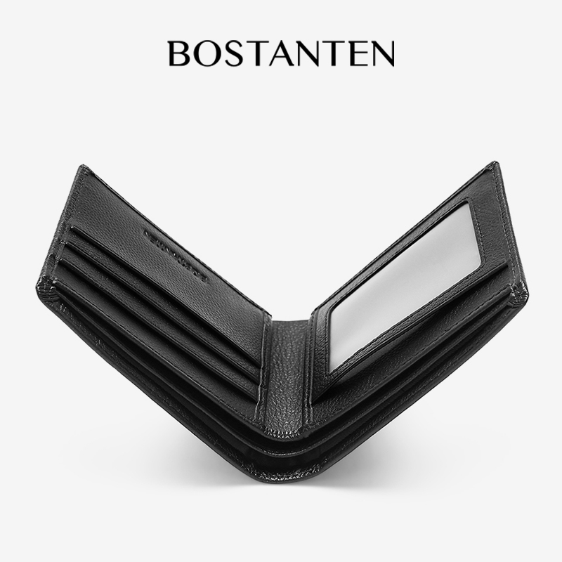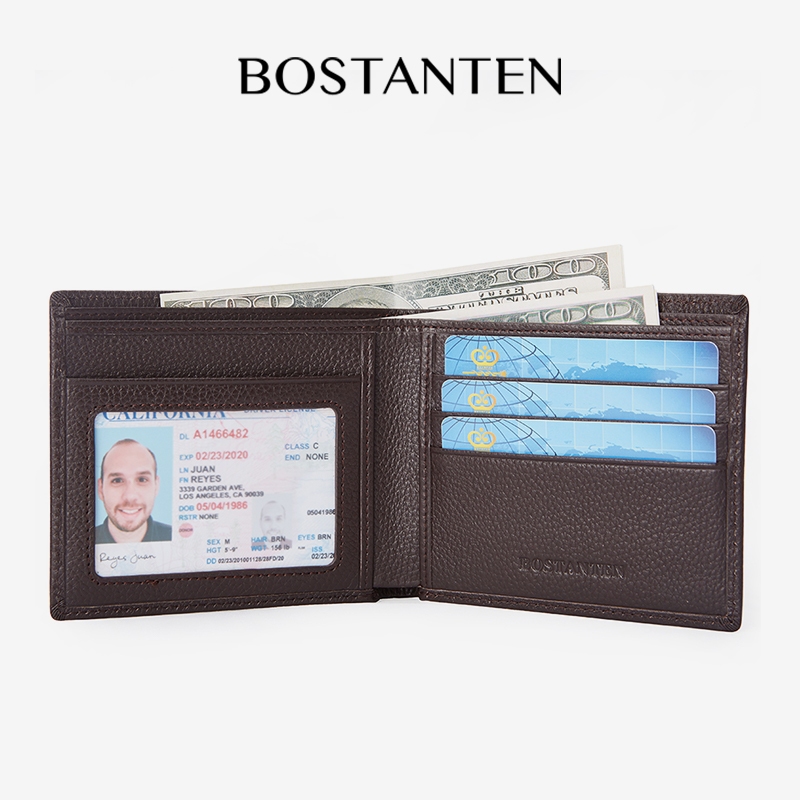 BOSTANTEN Dompet Pria Model Lipat Bahan Kulit PU Hitam/Coklat