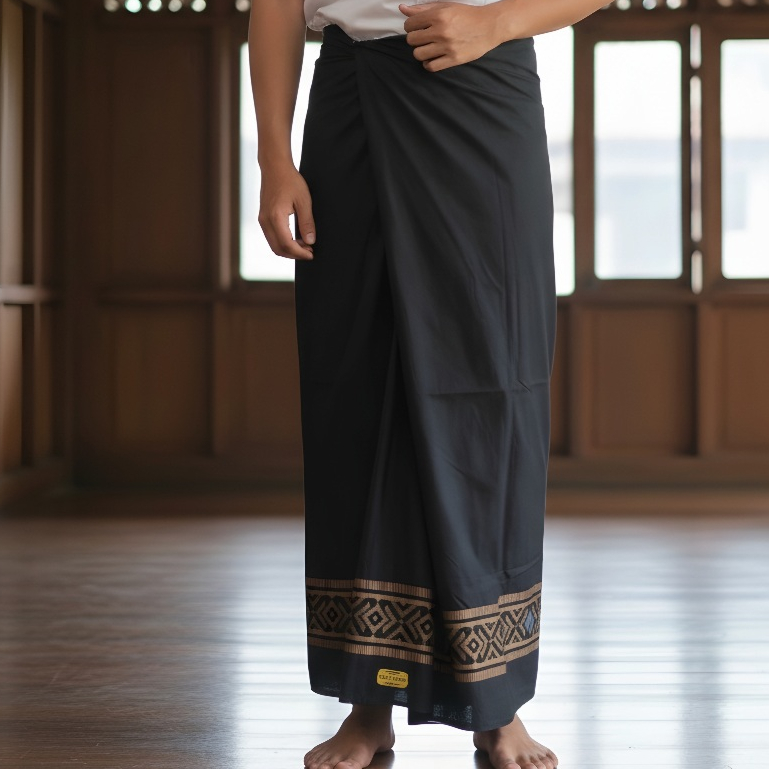 Wadimor - Sarung Bordir Motif Mozaik Timbul Katun Hitam Pintu Aceh Keren Elegan Pria Dewasa Terbaru