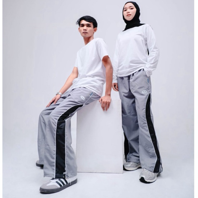 Logic.style Celana Baggy Pants Casual Unisex Celana Baggy apanjang Gesper Pungsional Abu Vintage Celana panjang Baggy pria | wanita Abu garis Y hitam