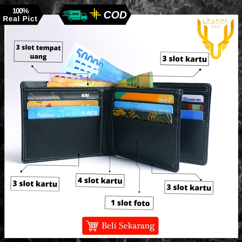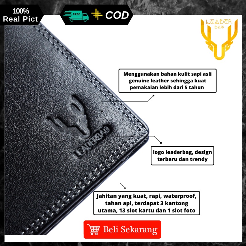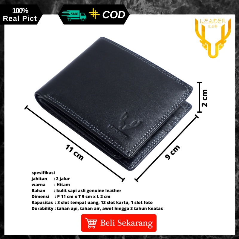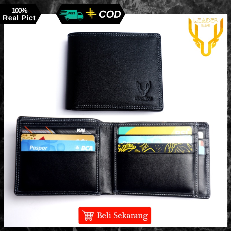 Dompet Pria Kulit Sapi Asli Warna Hitam Merk leaderbag Original Simpel Terbaru Dompet Pendek Lipat Cowok Keren Branded Asli Garut MINO E05