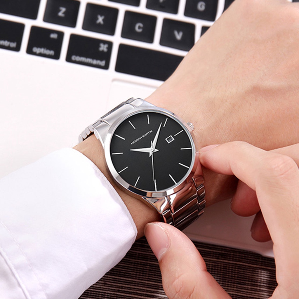 Jam Tangan Pria Hannah Martin Original Business Tanggal Analog Stainless Steel 17551