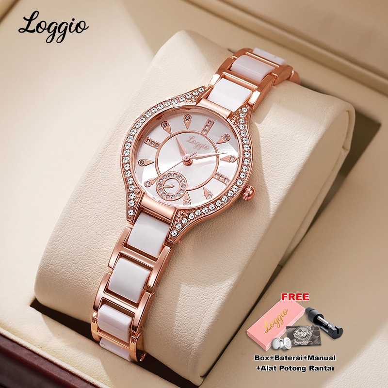Jam Tangan Wanitaloggio Besi Rantai Analog Terbaru Mode Women Watche