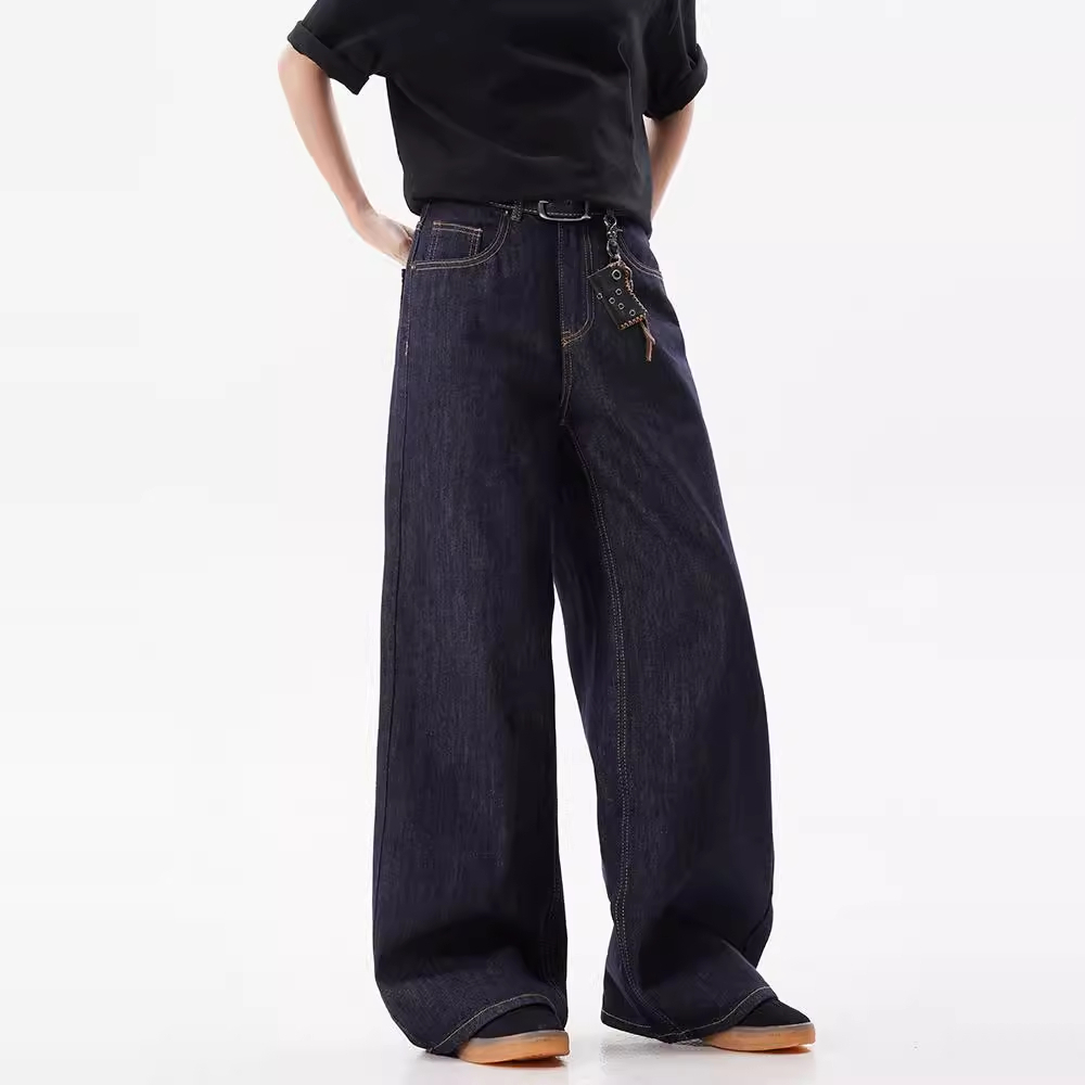 Celana Jeans Unisex Hitam-Biru Retro Amerika - Loose Fit Baggy