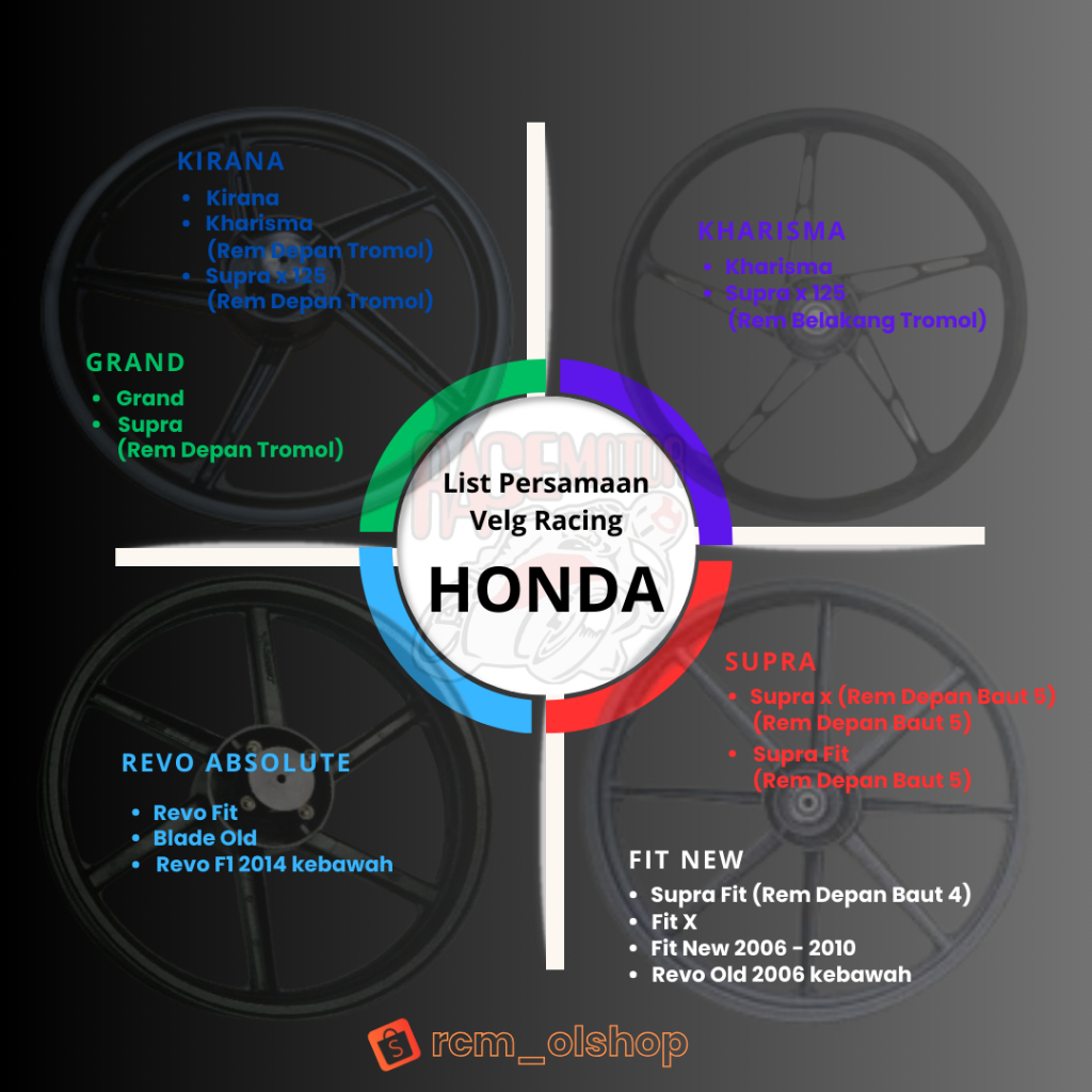 Velg Racing Supra, Fit New, Revo, Supra x 125, Kharisma, Grand, Kirana 1.40/1.60 Ring 17