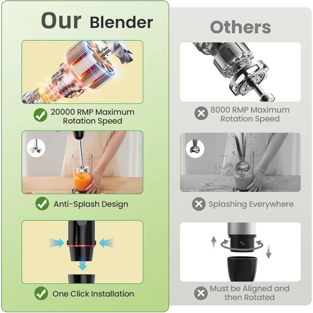 UNIG 4in1 Hand Blender Multifungsi Upgraded 4 Blades 2-Speed Stainless Steel Stick Blender