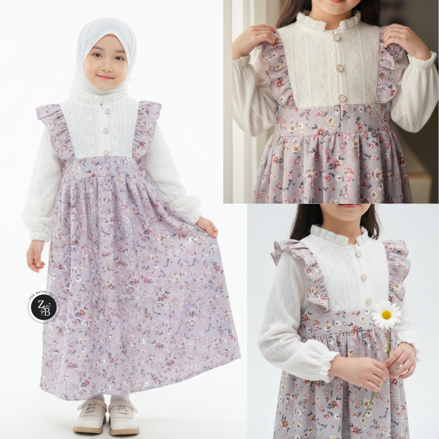Gamis Anak Perempuan Model Terbaru Korea Style Lebaran 2026 Fadila Kid Zoe77