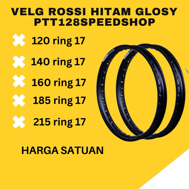 HARGA SATUAN VELG ROSSI ROSI VROSSI HITAM GILAP VELG JARI JARI 120 140 160 185 215 RING 17 H0LE 36