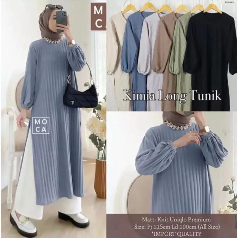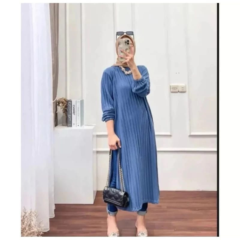 Baju Tunik Panjang Wanita Hornet Premium Tania Belah Samping Lengan Karet By Kimia Long