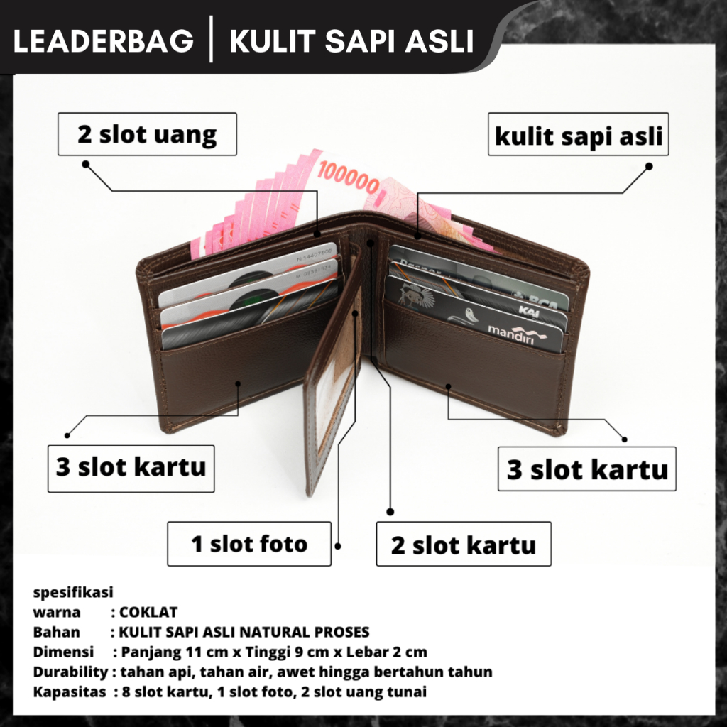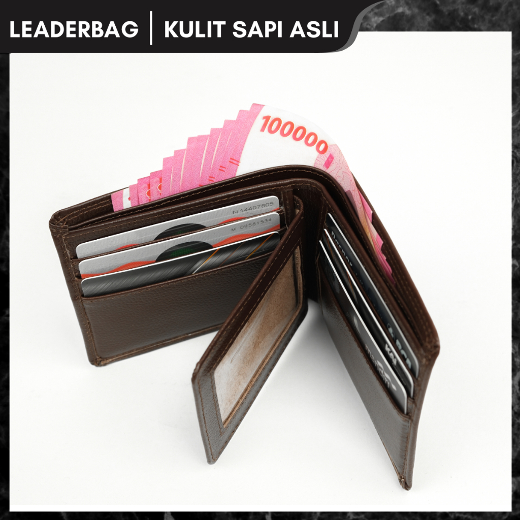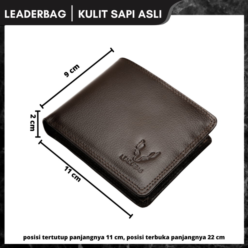 Leaderbag Dompet Pendek Pria Kulit Sapi Asli Warna Coklat Premium Walet Lipat Branded Elegan Terbaru
