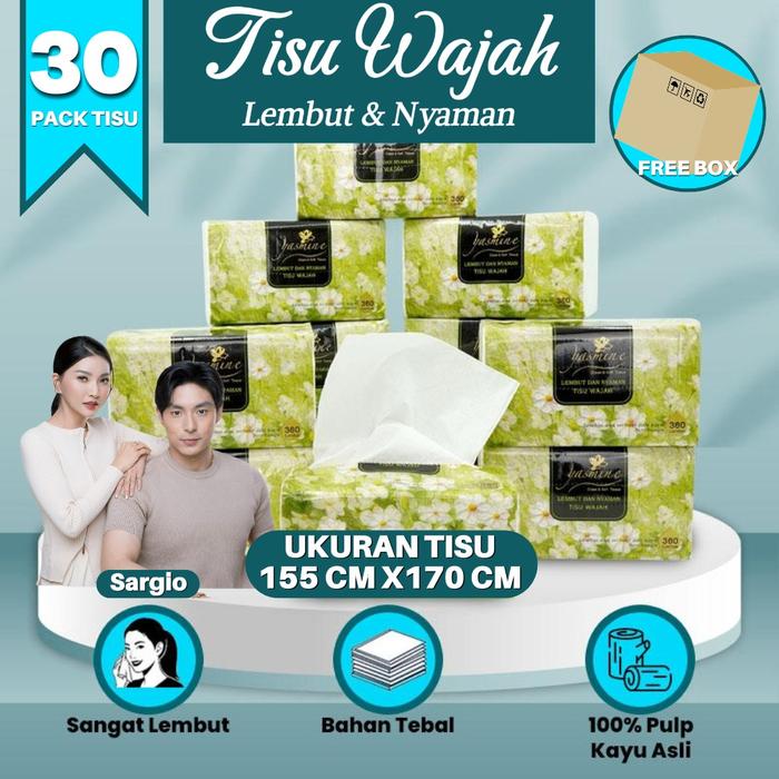 [EXCLUSIVE SARGIO] YASMINE TISU 30 PACK 360 HELAI 3 PLY SOFT FACIAL TISSUE TISU WAJAH HALUS LEMBUT 100 PERSEN SERAT ALAMI KUA