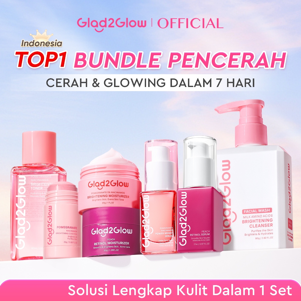 [Cocok Untuk Pemula]Glad2Glow Cerah Glowing Bundle all in 1 7in1-Brightening Moisturizer+Serum+Cleanser+toner+Peeling so