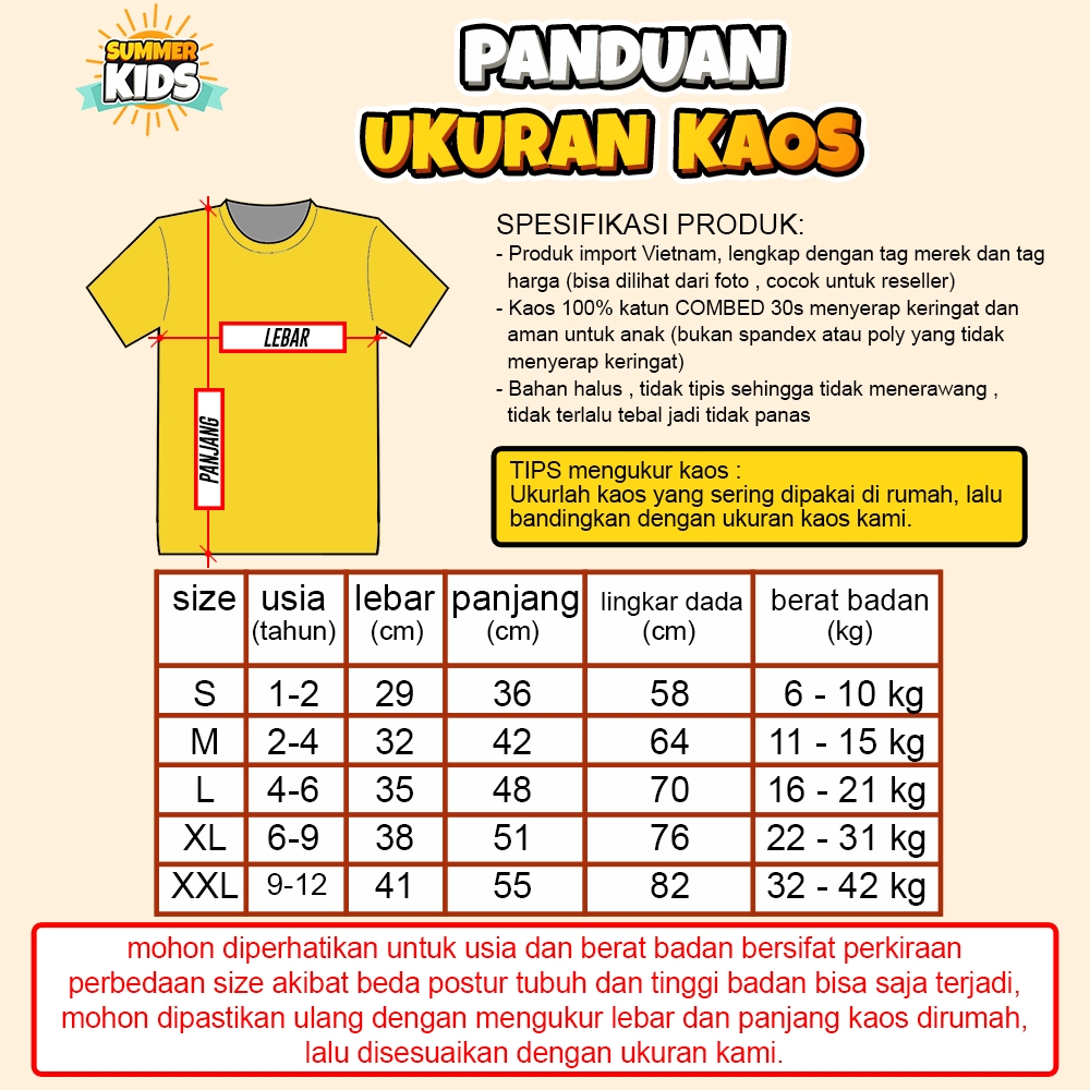 Kaos Anak Laki Laki Perempuan 1-12 Tahun Summer Kids Baju Atasan Premium