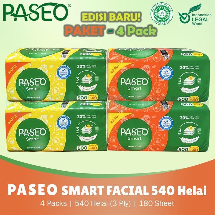 (KHUSUS LIVE) 4 PACK TISSUE FACIAL PASEO SMART 540 HELAI - 3 PLY / TISU WAJAH HALUS 540 HELAI