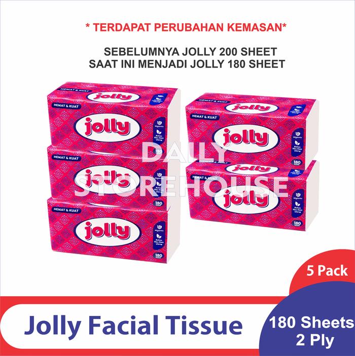( PAKET 5 PACK ) TISSUE FACIAL JOLLY 180 SHEETS 2 PLY