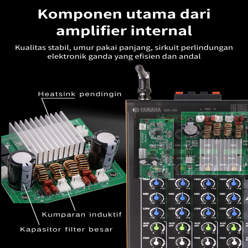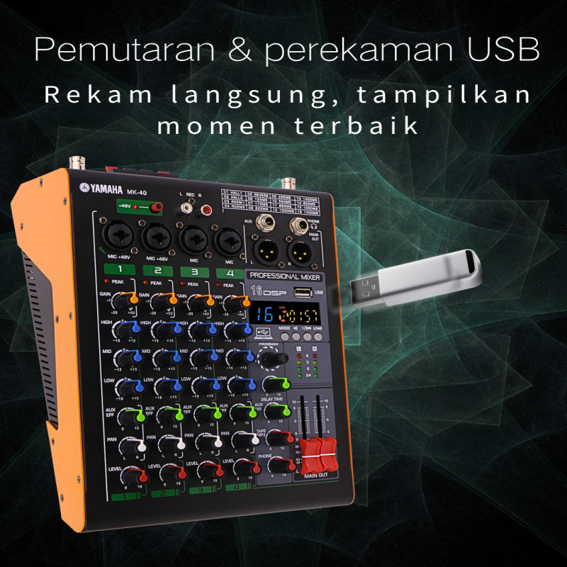 power mixer audio yamaha/MK 4channel (2x800W),mikser with 2 Wireless Mic,16 DSP,USB,48V DC,Bluetooth