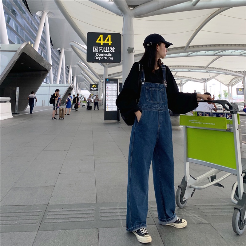 Jumpsuit Longgar Jumpsuit Denim Pakaia Kodok Overall Tali Ikat Celana Wanita Celana Pelangsing Jumpsuit High pinggang Le