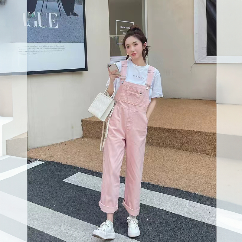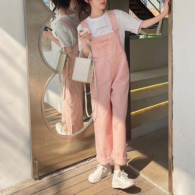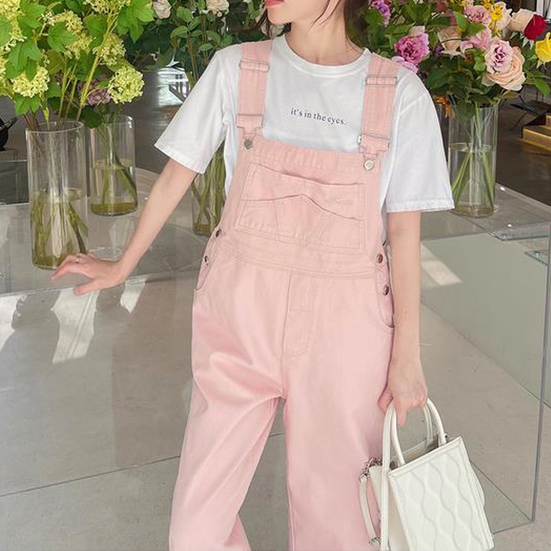 Overall Korea Warna Merah Muda Katun Denim S-3XL