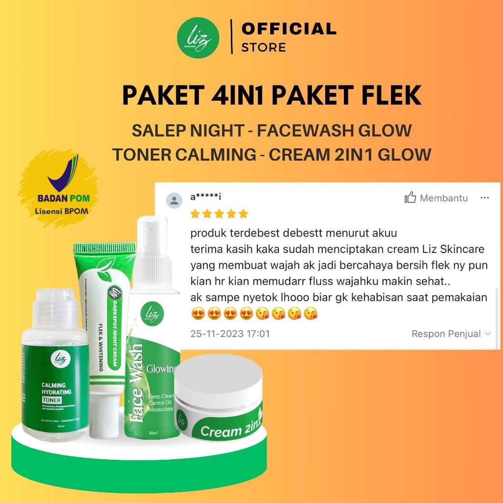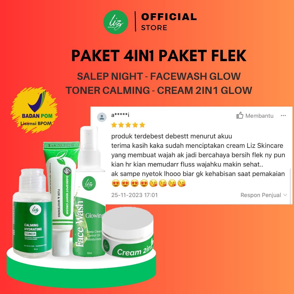 Elzet Skincare Paket 4in1 BPOM p Retinol Night Whitening Toner Calming Hydrating Cream Glowing Facial Wash Krim Reti