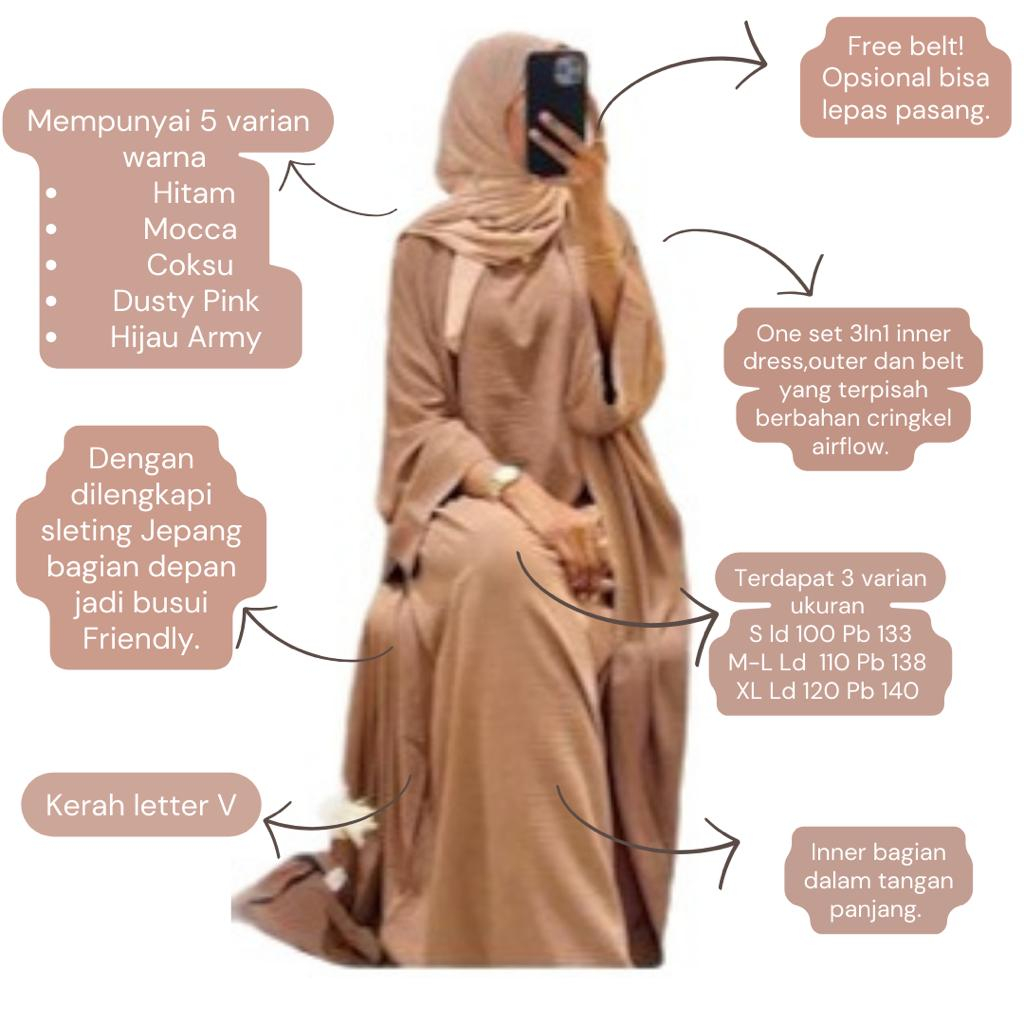 SYAMILA SET ABAYA TURKEY SYAR'I INNER PLUS OUTER BAHAN CRINGKLE UKURAN S,M,L SAMPAI XL