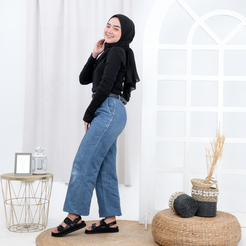 Jora Sandal Platform Wanita Alina Full Hitam Size 35 - 43