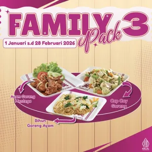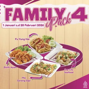 Family Pack 1, Family Pack 2, Family Pack 3, Family Pack 4, Couple 1, Couple 2, Nasi Goreng Seafood, Nasi Goreng Special, Nasi Goreng Sapi Cabe Ijo, Chicken Cordon Bleu + French Fries & Salad, Nasi Goreng, Mie Ayam Teriyaki, Nasi + Ayam Teriyaki, Nasi + Ayam Katsu Teriyaki Saos, Nasi + Ayam Lada Hitam, Nasi + Sapo Tahu Ayam, Fish & Chips + French Fries & Salad, Nasi Ayam Cah Jamur, Nasi Ayam Cah Kapri, Nasi Bistik Ayam, Nasi + Ayam Goreng Mentega, Nasi + Udang Goreng Tepung, Fillet Ikan Goreng Rica-Rica, Bakso Halus Mie/Bihun, Mie Ayam Bakso, Mie Ayam Pangsit Rebus Bakso, Bihun Ayam Pangsit Rebus Bakso, Bihun Goreng Ayam, Bihun Goreng Seafood, Kwetiau Goreng Ayam, Kwetiau Sapi Goreng, Kwetiau Seafood Goreng, I Fu Mie Seafood, Lo Mie, Express Bowl Ayam Mentega, Express Bowl Ayam Mayo, sesuai gambar