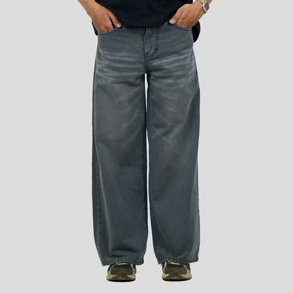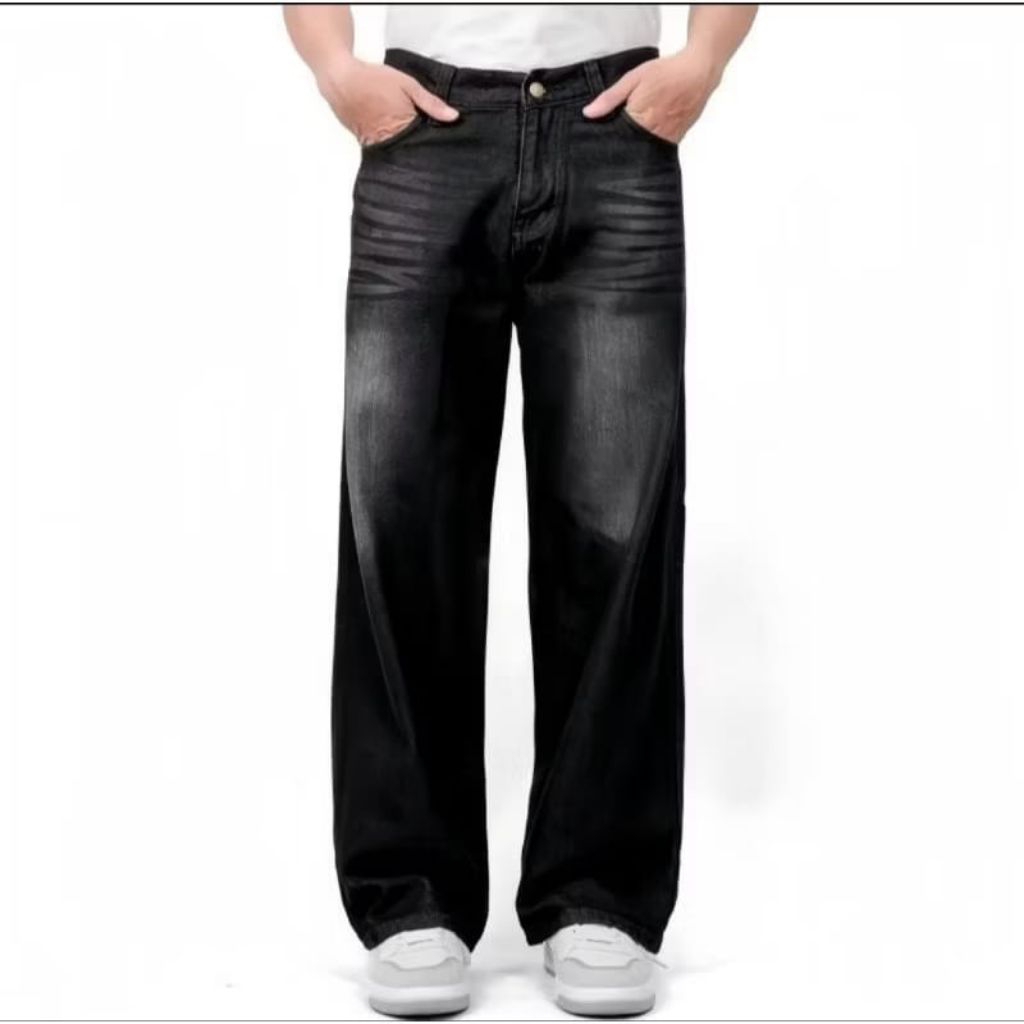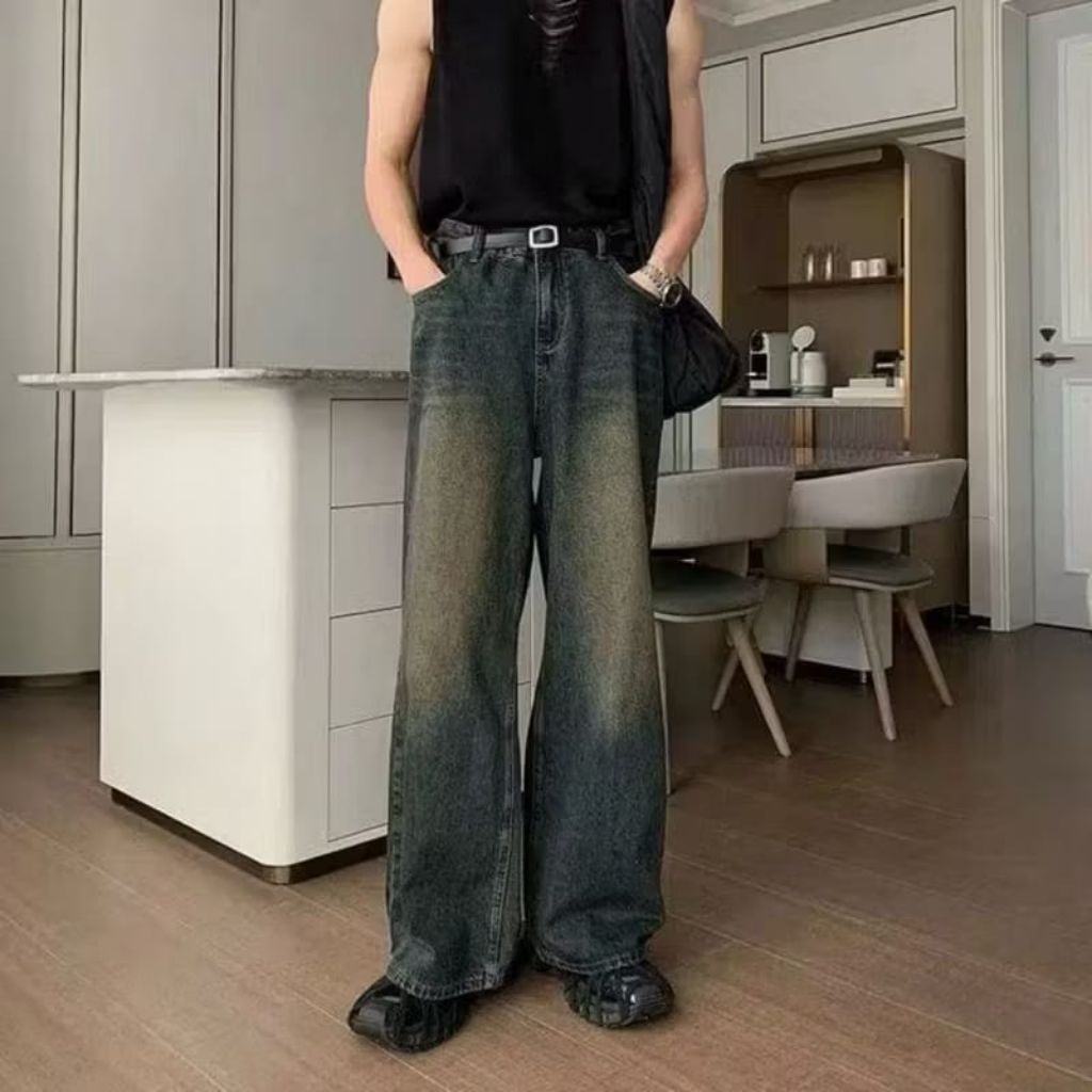 Celana Jeans Pria Baggy Oversize Losse Pants Korean Style Gombrong Wisker Unisex