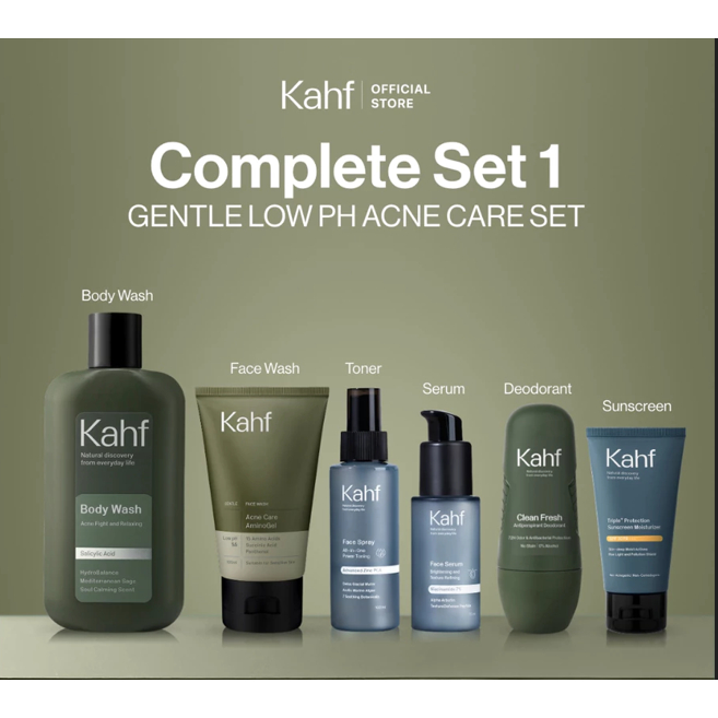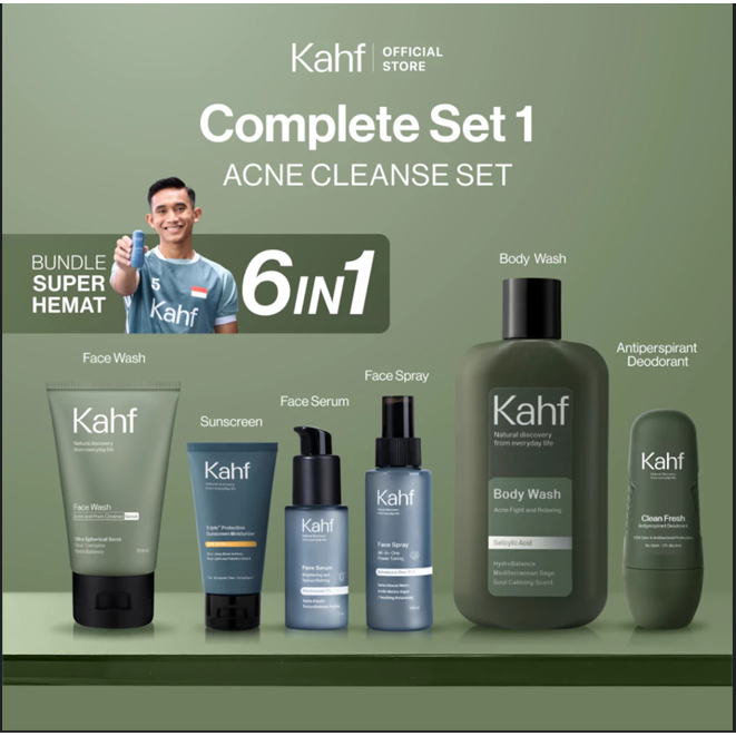 Kahf Paket Complete Set 1 (Face Wash + Toner + Serum + Sunscreen Moisturizer + Body Wash + Deodorant)