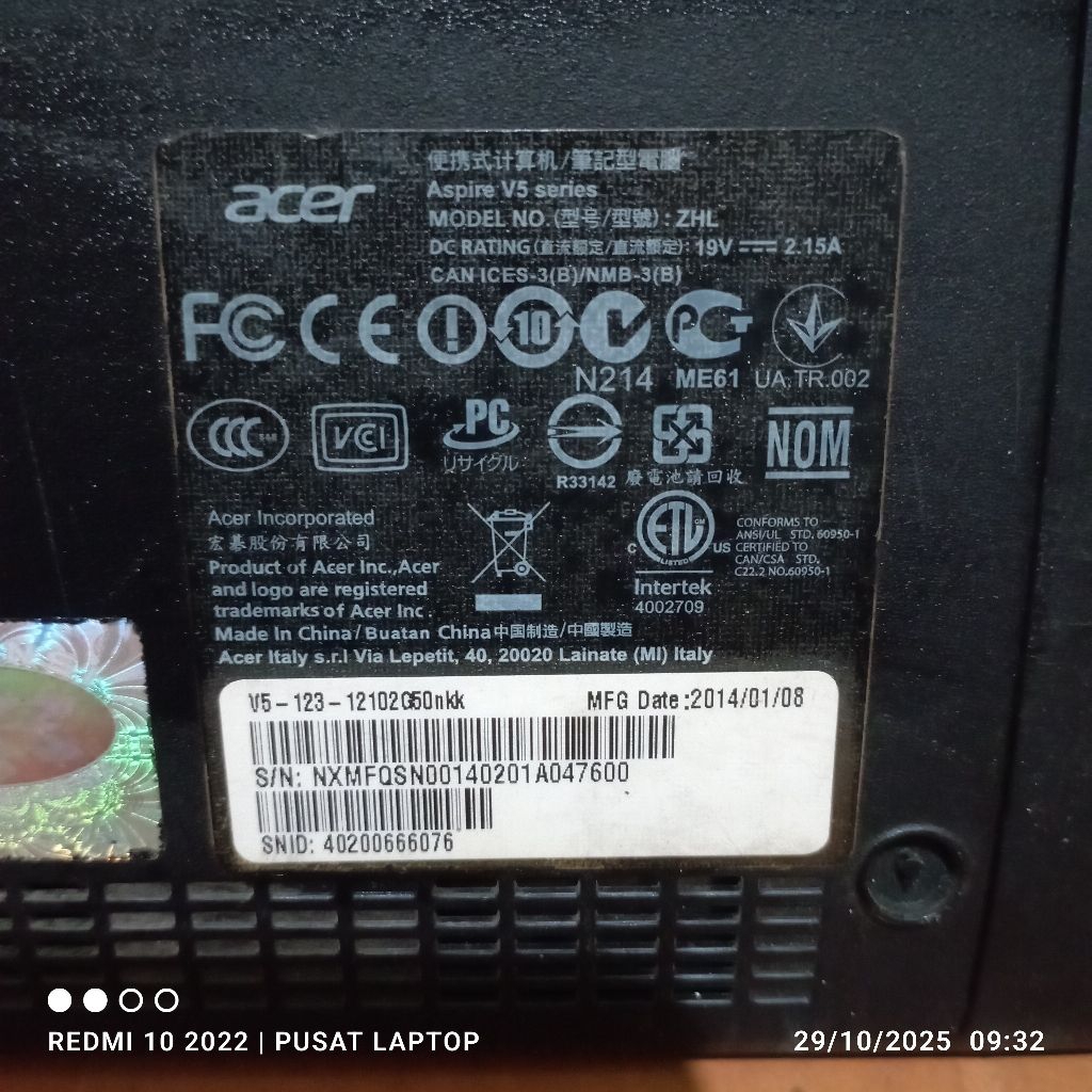 Notebook Laptop Acer Aspire V5 AMD E1 kondisi mesin hidup nodisplay / layar gak tampil