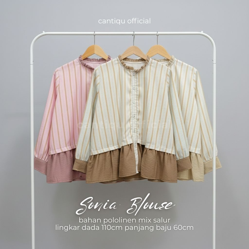 Cantiqu - Kemeja Salur Atasan Wanita Blouse Stripe Bahan Katun Mix Pololinen Sonia Korean Style