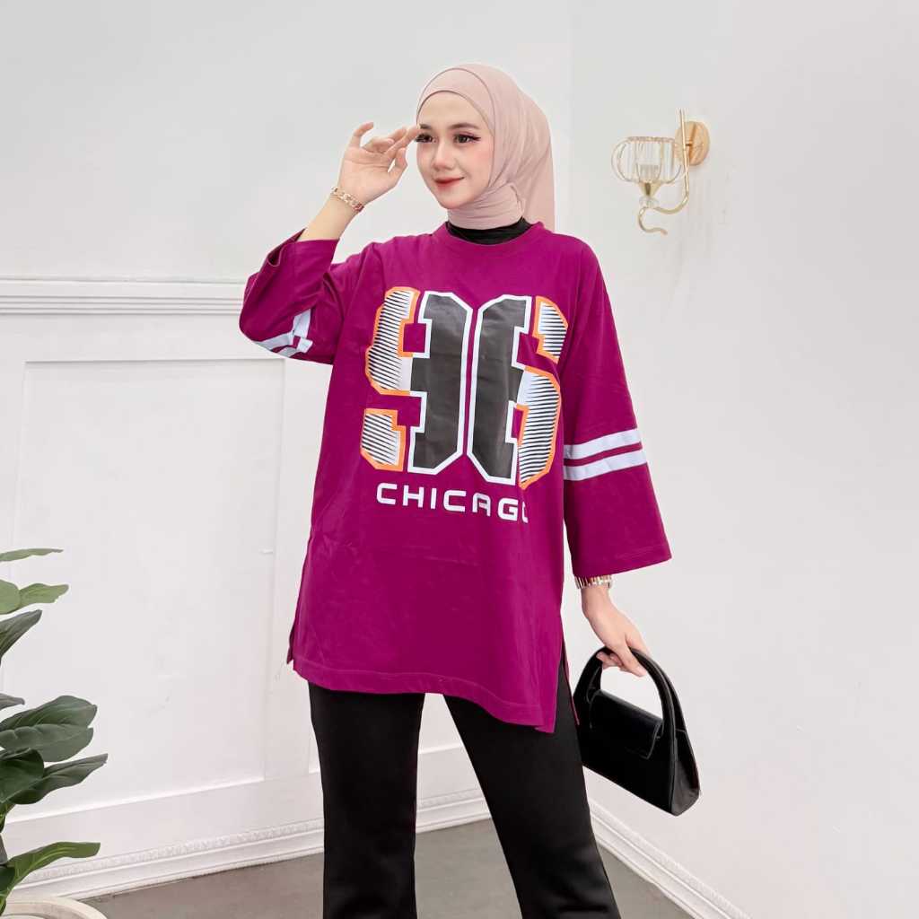 Kaos Wanita Oversize Terbaru Baseball Chicago Lengan 7/8 Bahan Cotton Combed 24s
