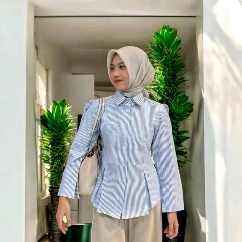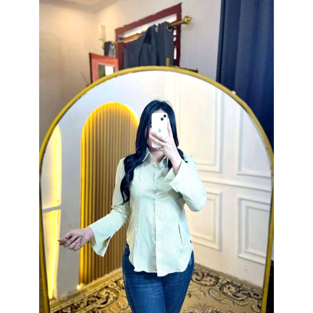 Lola Kemeja Stripe Wanita Fit Body Katun Lengan Panjang