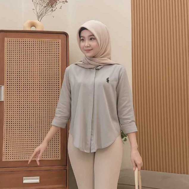 Kemeja Wanita Rayon Twill Atasan Bordir Lengan