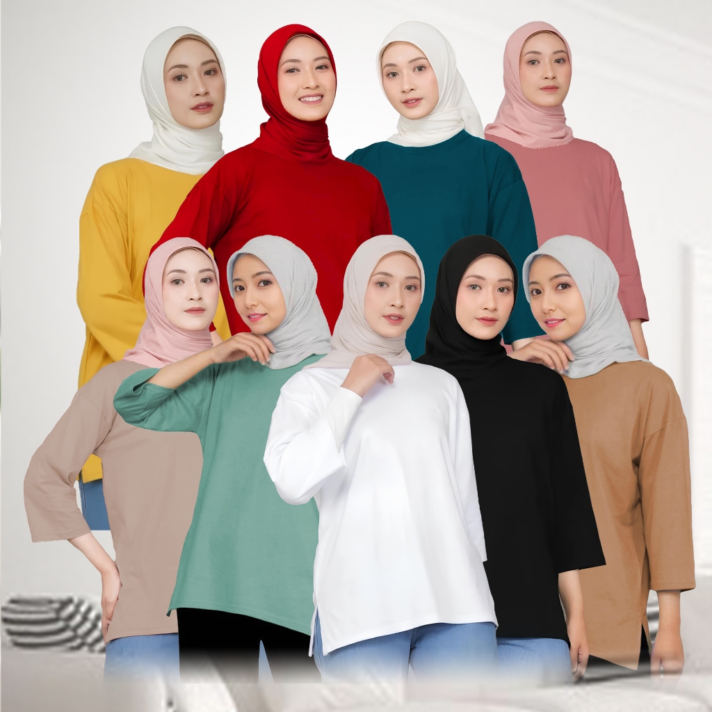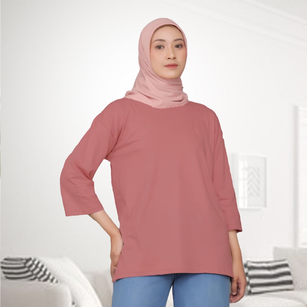 Basic Oversize Wanita Lengan 7/8 Hijab Style Cotton Combed Premium Atasan Kaos Jumbo Polos
