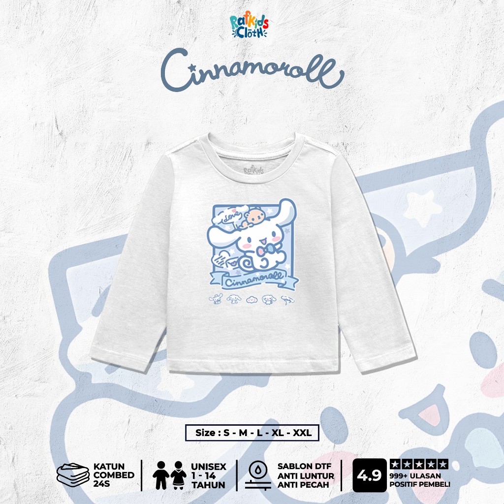 Baju Anak Perempuan Tangan Panjang Usia 1-12 Tahun Gambar Cinnamoroll Sanrio Combed 24S