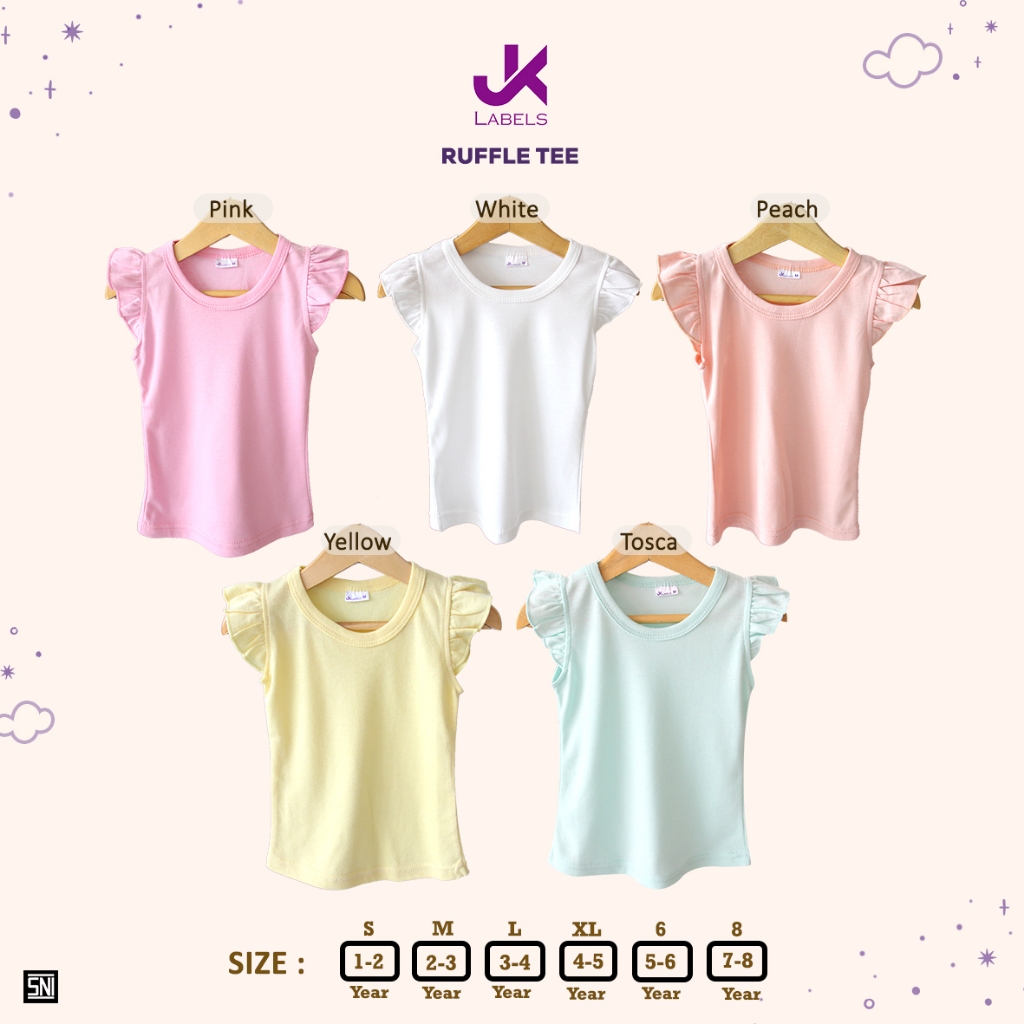 Baju Anak Perempuan Jk Labels Ruffle Tee 1 - 8 Tahun